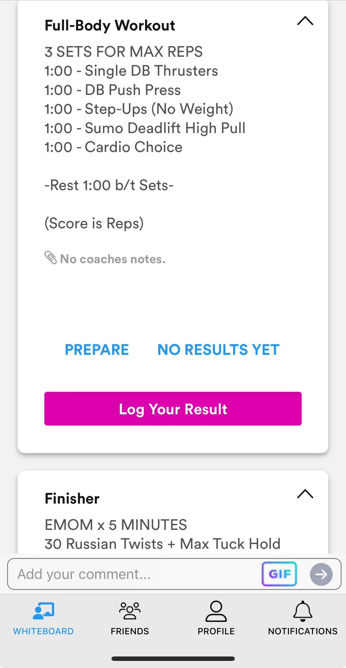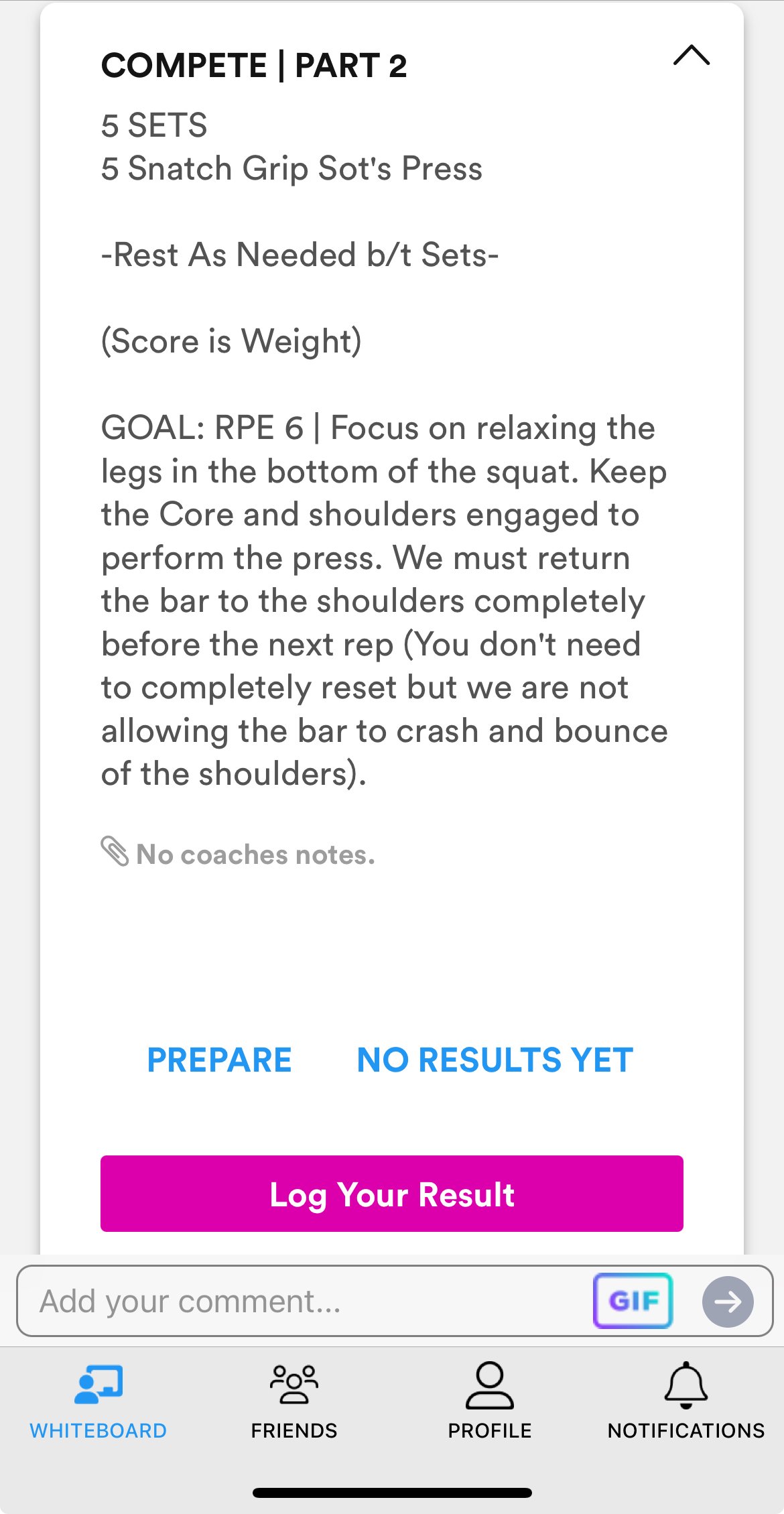 Workouts are delivered via the SugarWOD app where you can view workouts, log scores, and even look up videos of movements you’re not familiar with. Also includes features such as various workout timers, percentage calculators, and benchmark tracking.